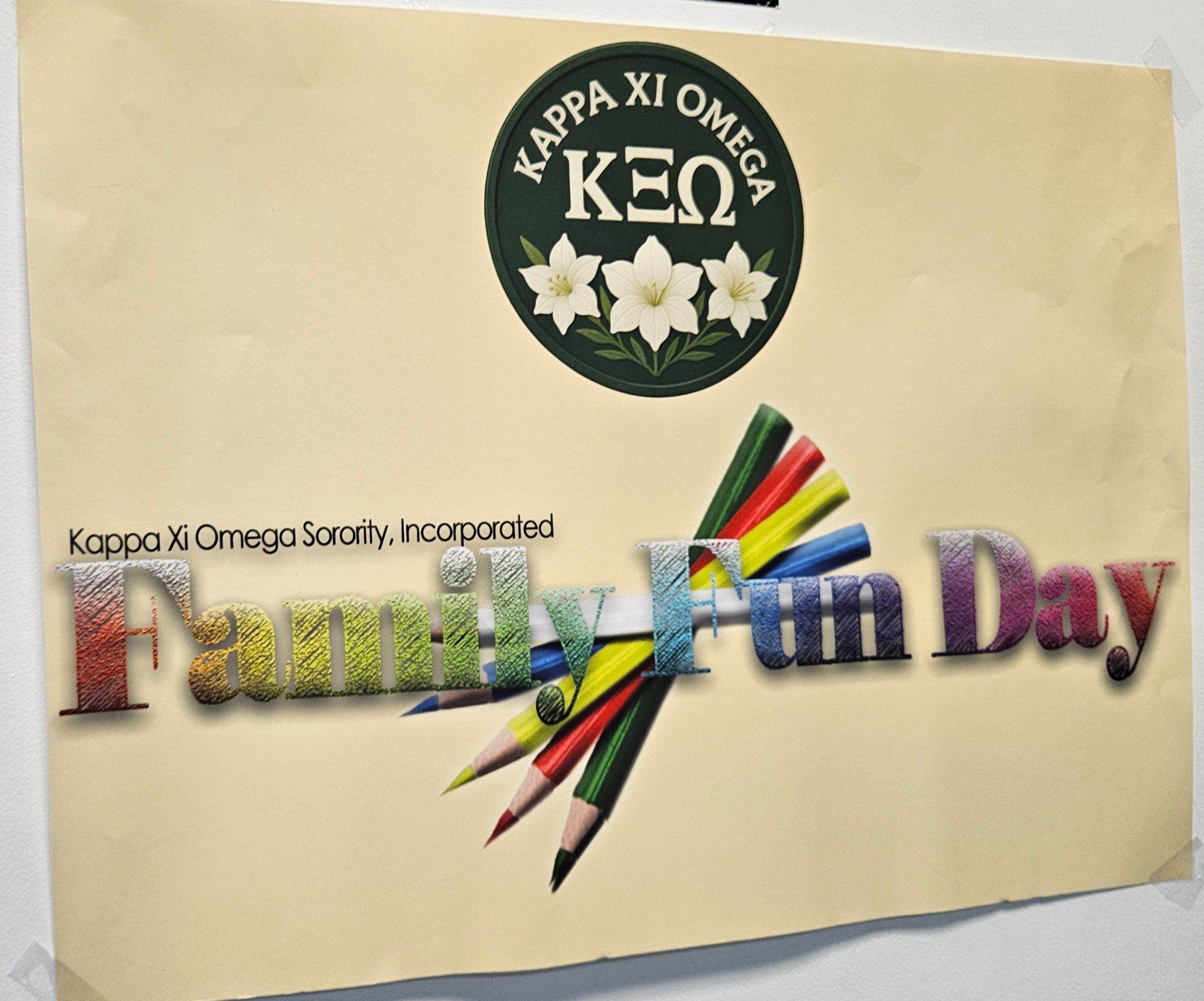 Kappa Xi Omega has provided over one thousand children with school supplies throughout the Tampa Bay area. Furthermore, in 2009 Family Fun Day began honoring dedicated teachers by providing them with small tokens of appreciation.